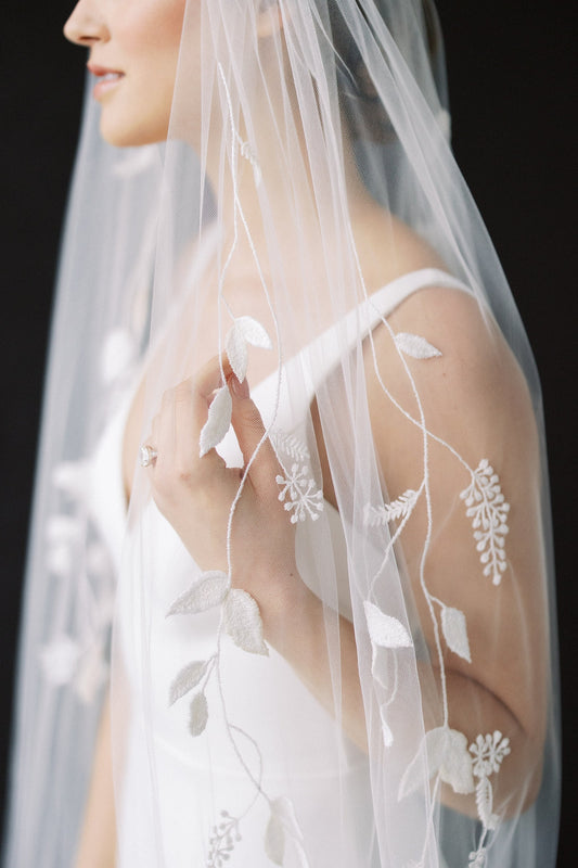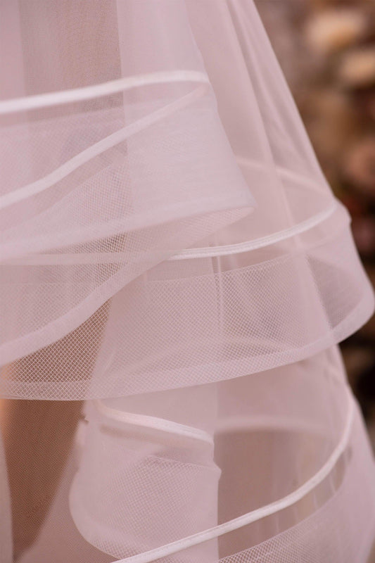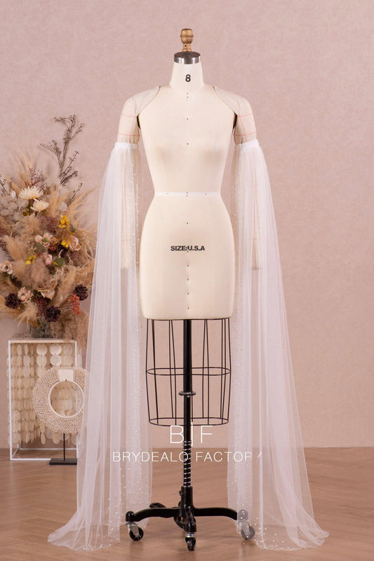 Elegant Floor-Length Bridal Tulle Pearl Bell Sleeves