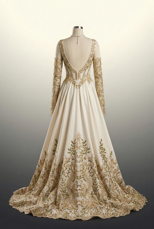 Heavy Beaded Black Wedding Dress Long Sleeves Illusion Neckline Size 18