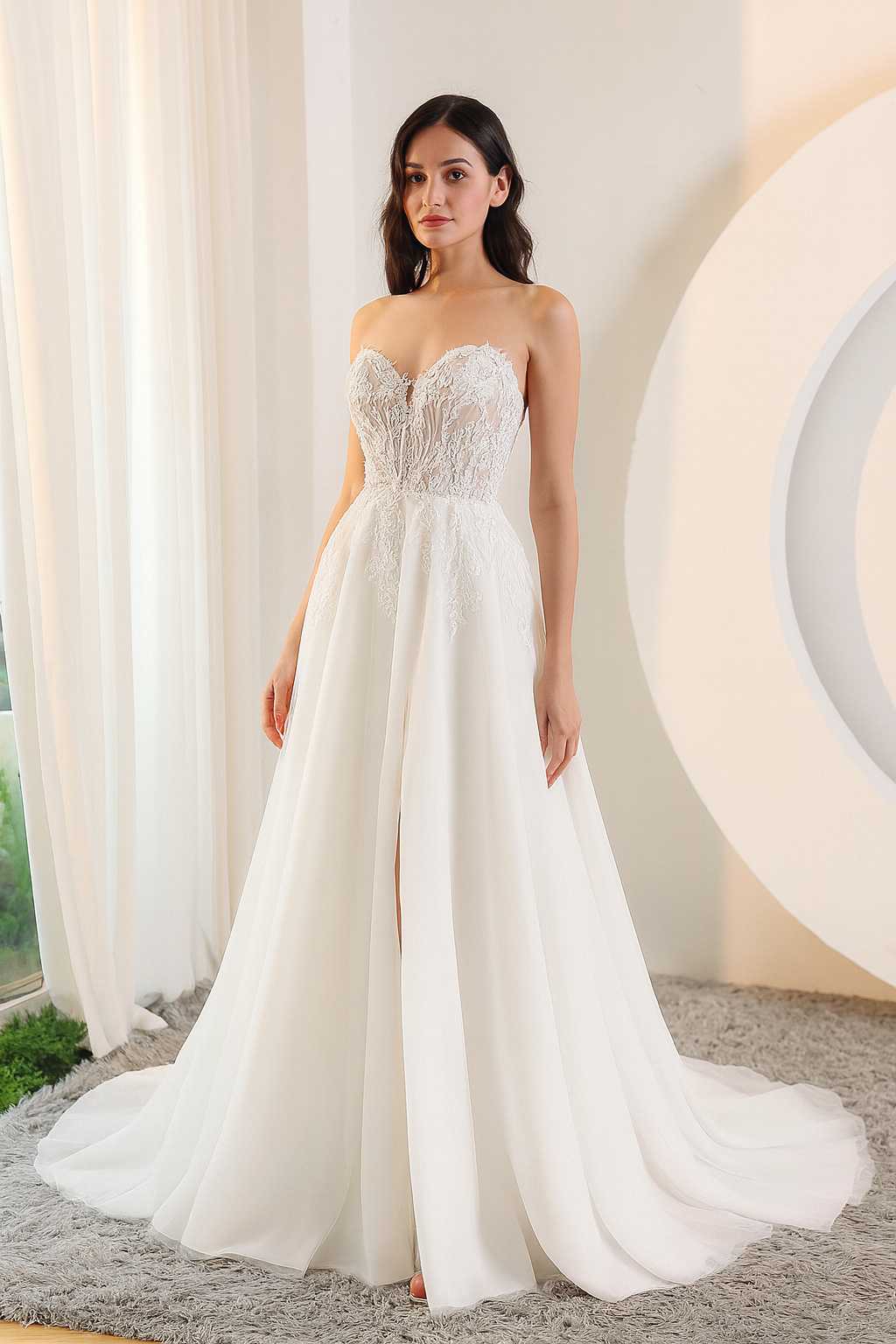 Feature: A Line, Lace Applique, High Split