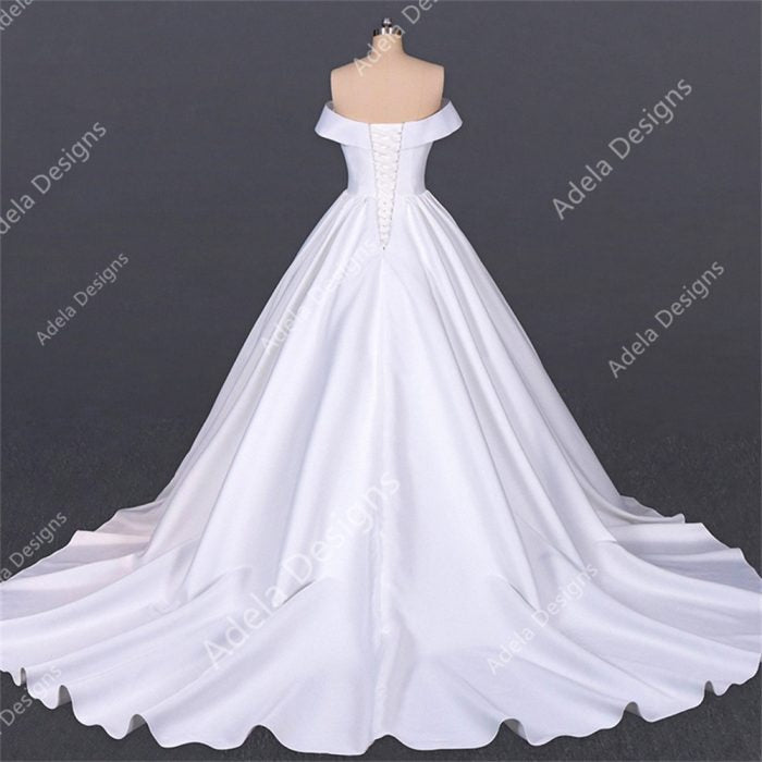 Fanny — Satin Off-Shoulder Ball Gown Wedding Dress with Corset Back (Shown with Petticoat, Sold Separately)