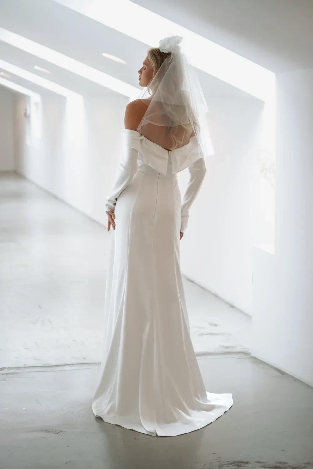 Allamanda by Sony Soley – Minimalist Off-the-Shoulder Wedding Dress with Long Sleeves