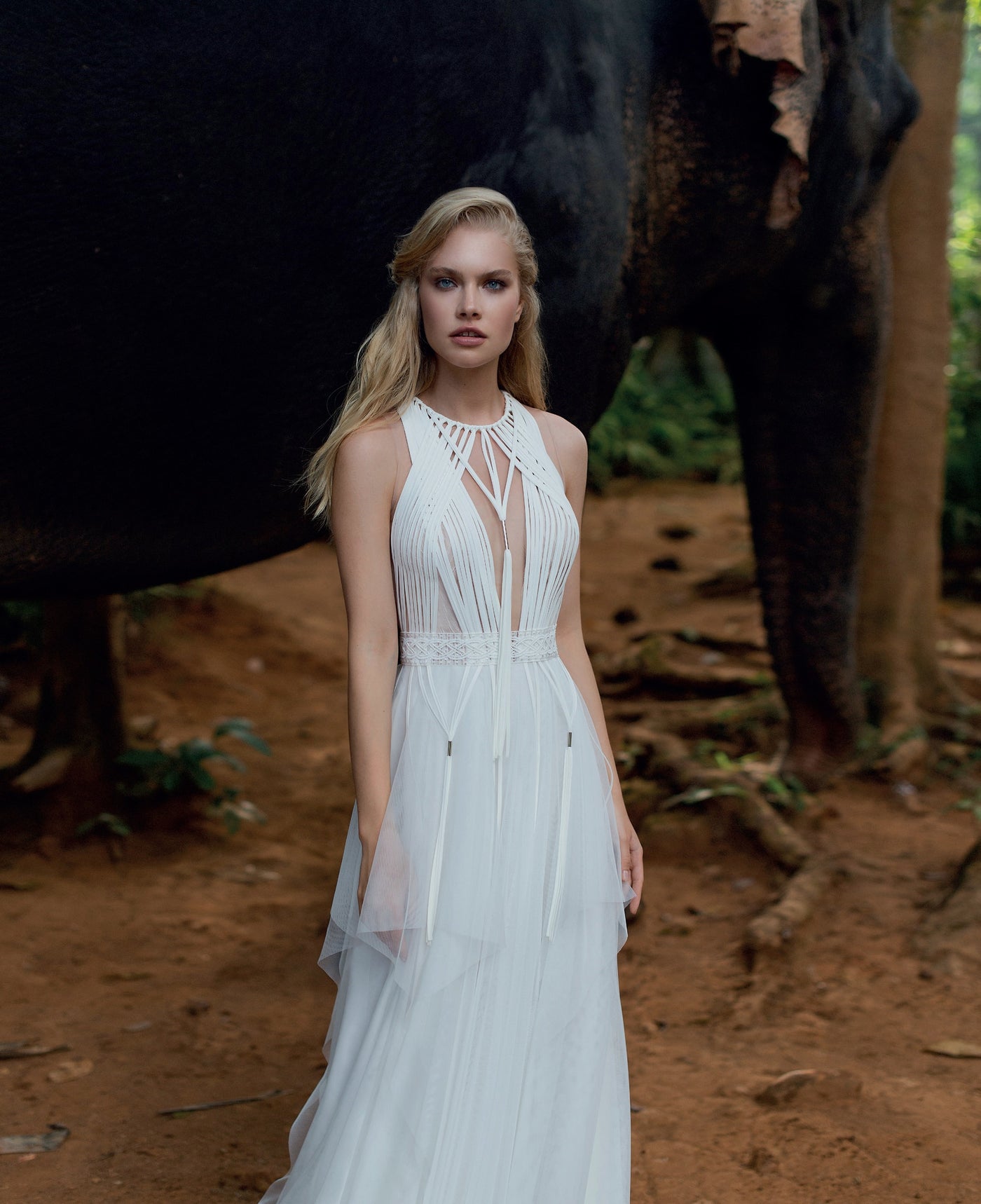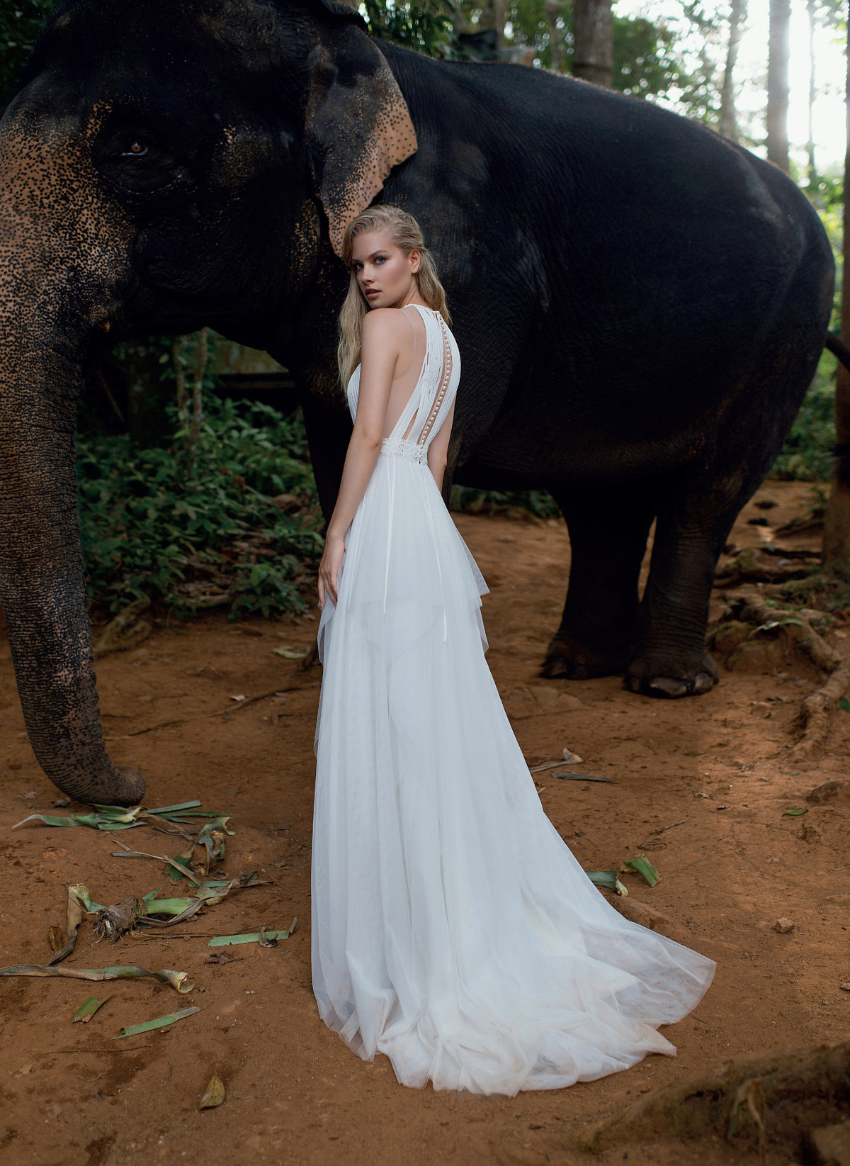 Beautiful Boho Stretch Sleeveless Straps Open Back Wedding Dress Bridal Gown Simple ALine