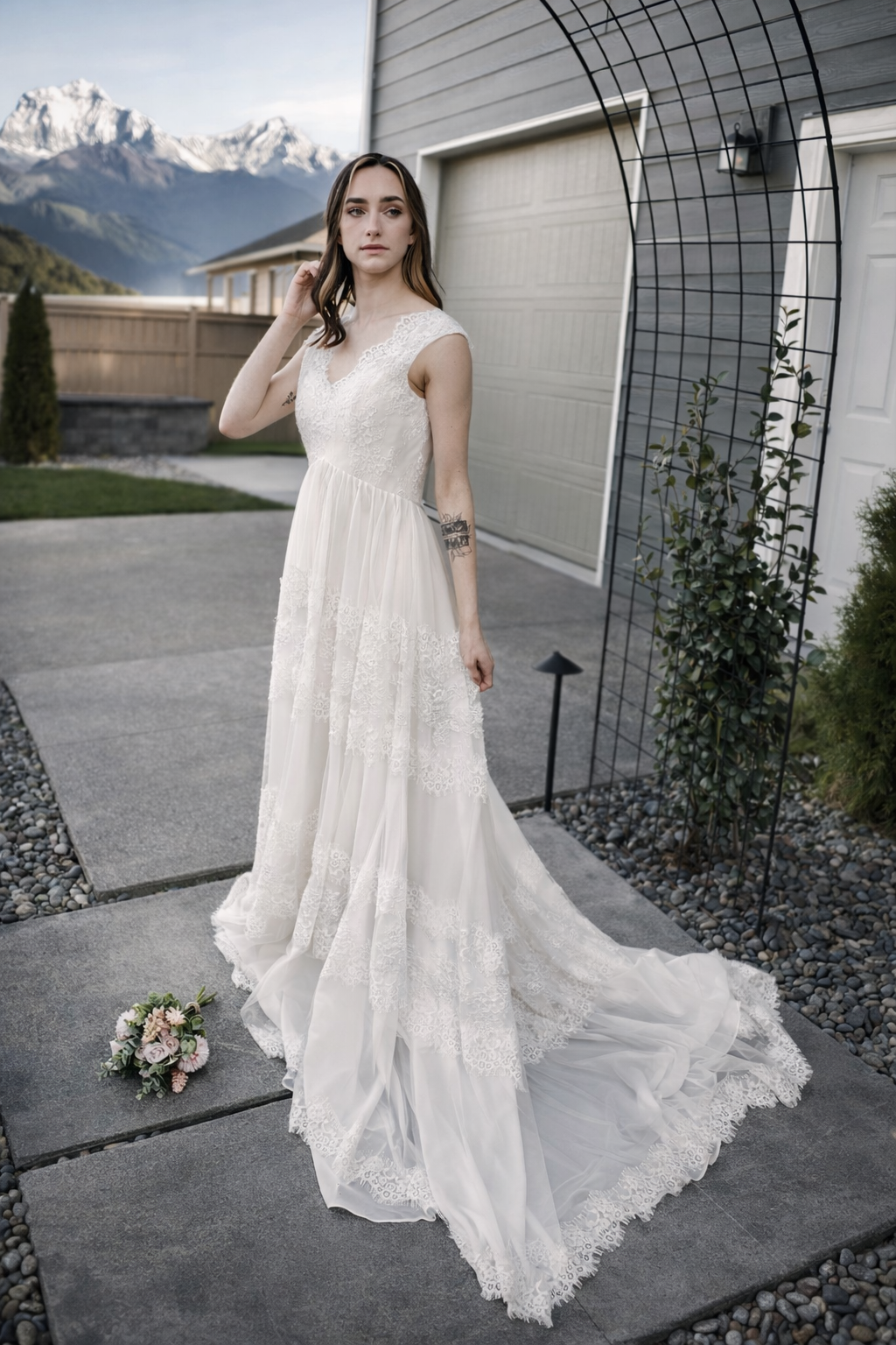 A-line Sleeveless Lace Empire Waist Wedding Dress