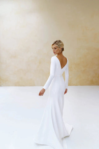 Brix Redux-Modern Crepe Wedding Dress with Long Sleeves & Sleek Silhouette