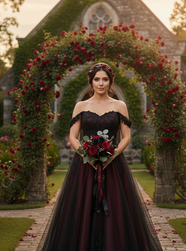 Perfect for alternative brides, gothic weddings, or anyone seeking drama and romance in one unforgettable gown.