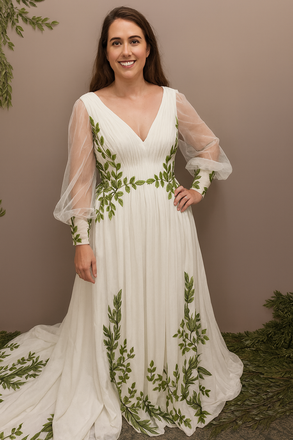 Eden Wedding Dress - Nature-Inspired Bridal Gown with Handcrafted Greenery Details