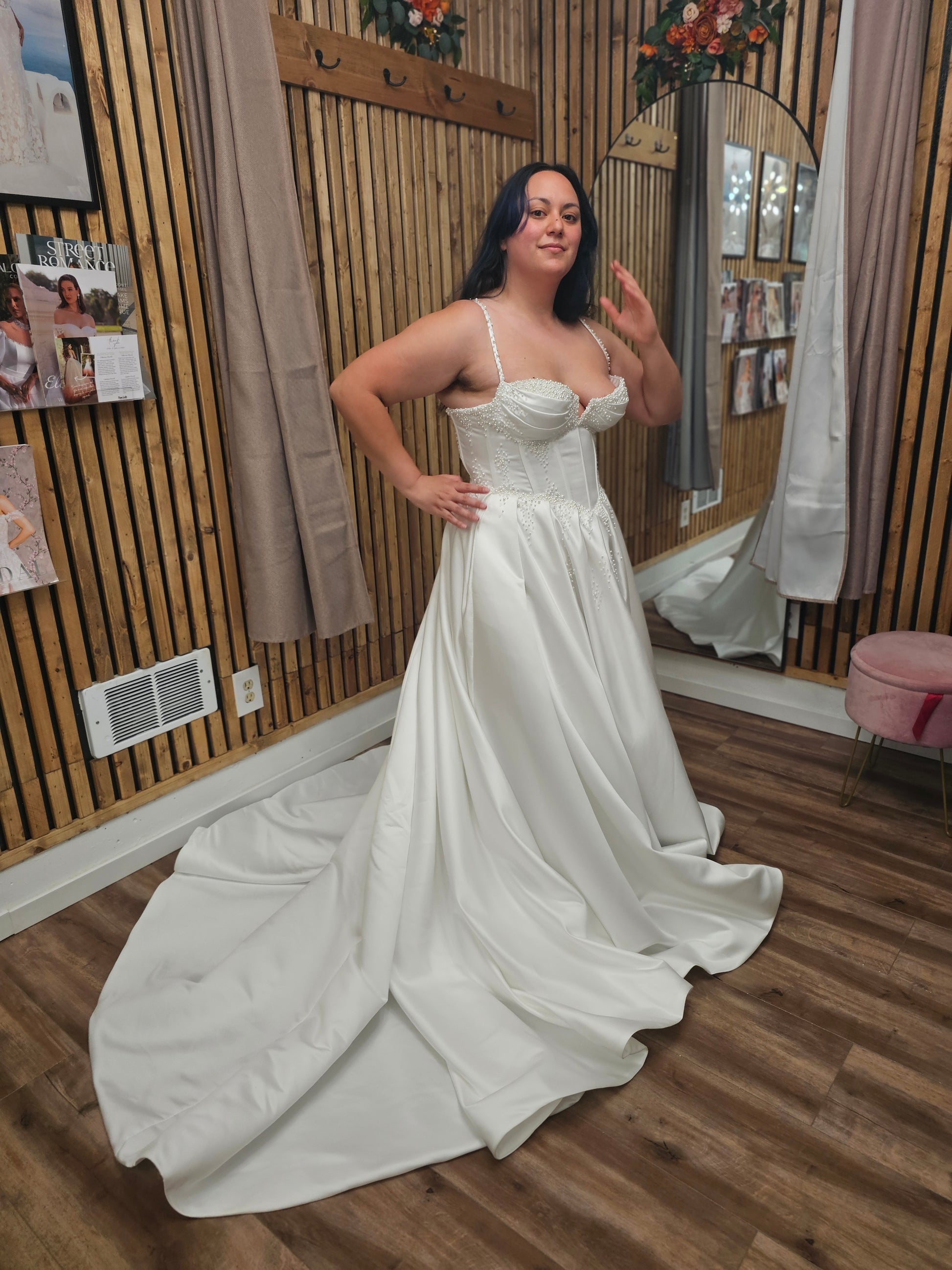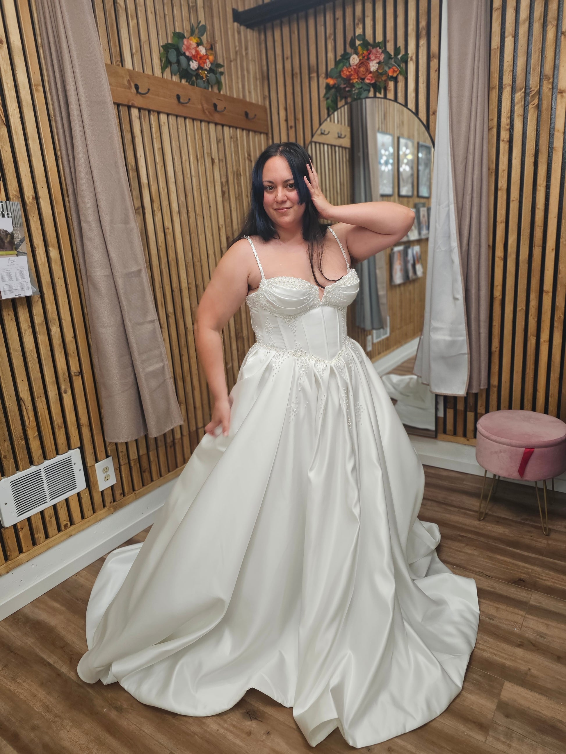 Whether you're searching for a satin corset wedding dress, a ball gown with beaded straps, or a dramatic modern bridal gown, Emmaleigh is designed to make you feel like royalty.