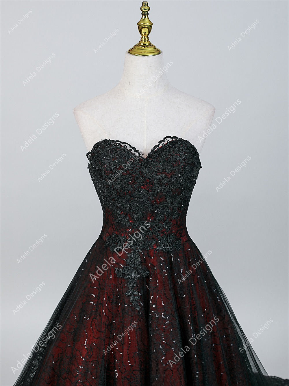 Black base with dark red floral lace