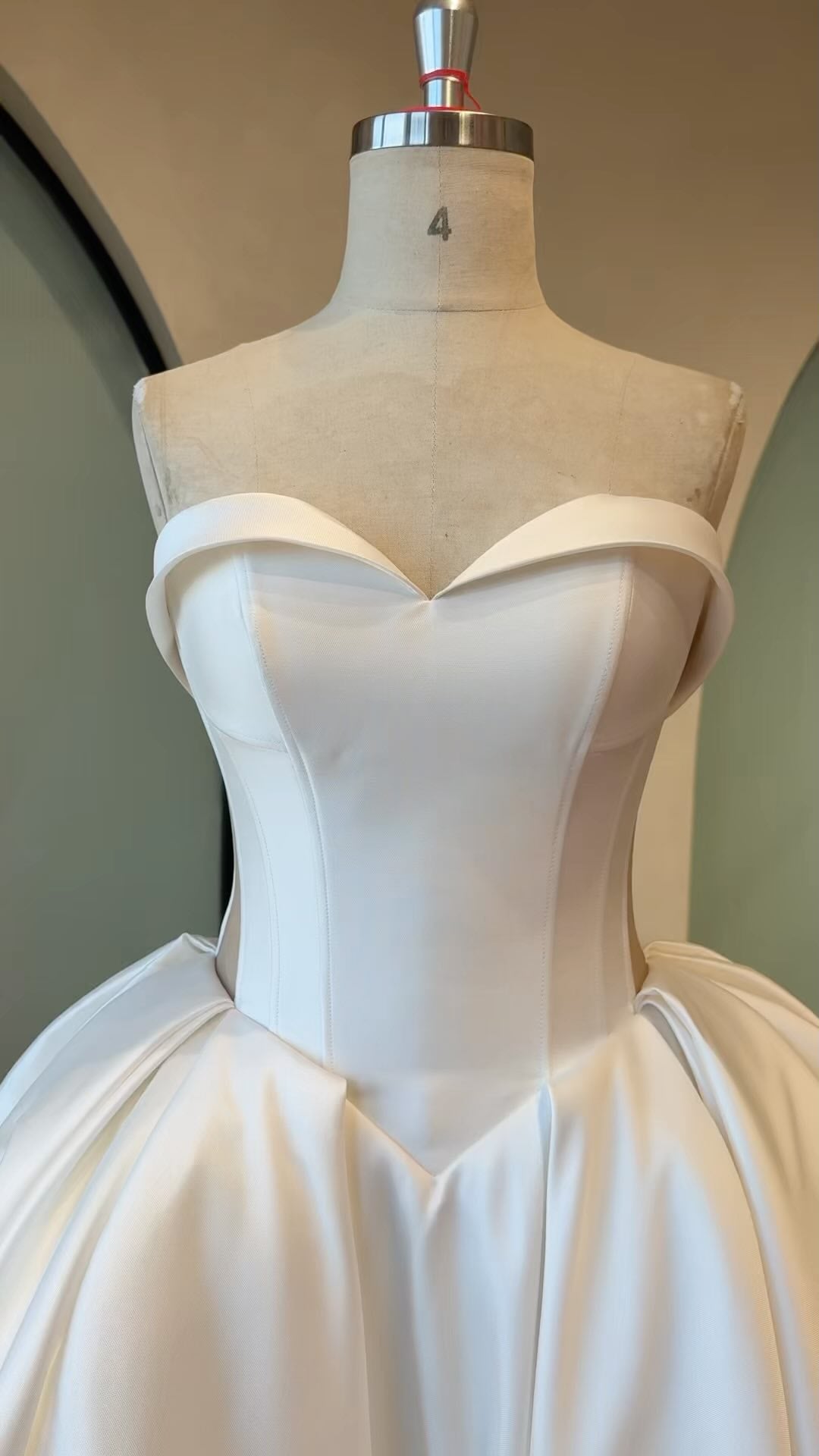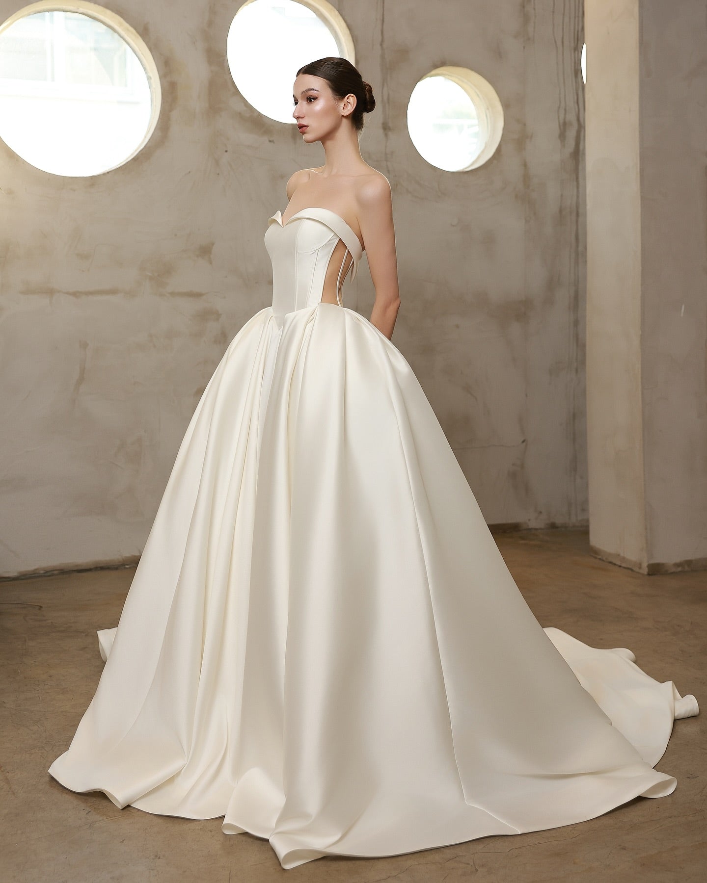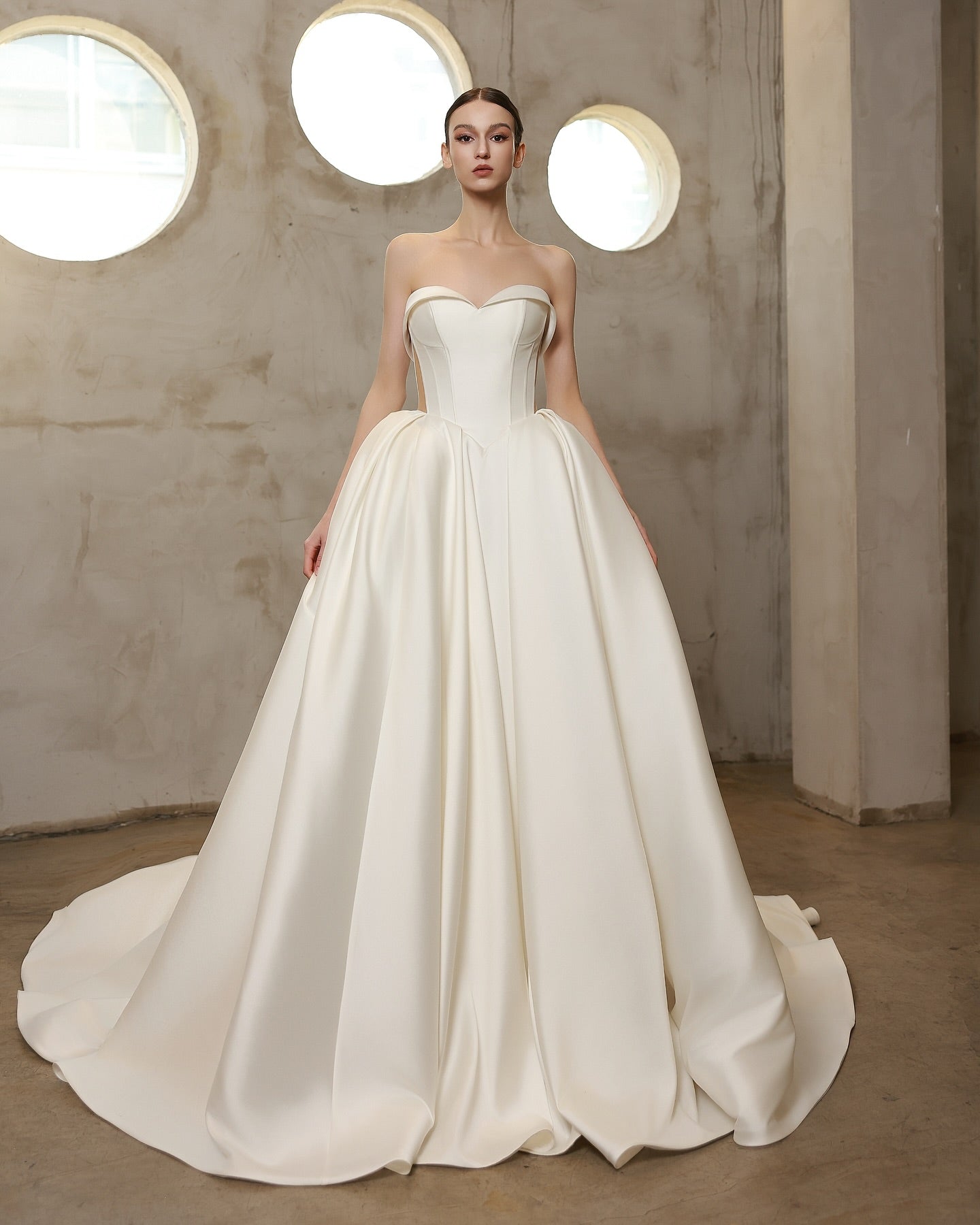 Timeless elegance meets bold structure in the Jolis wedding dress — a statement gown made for the modern romantic. Crafted from luxurious Mikado fabric, this voluminous ball gown features a sculpted sweetheart neckline and a flattering corset-style back with exposed boning and lace-up detail, offering both support and drama.