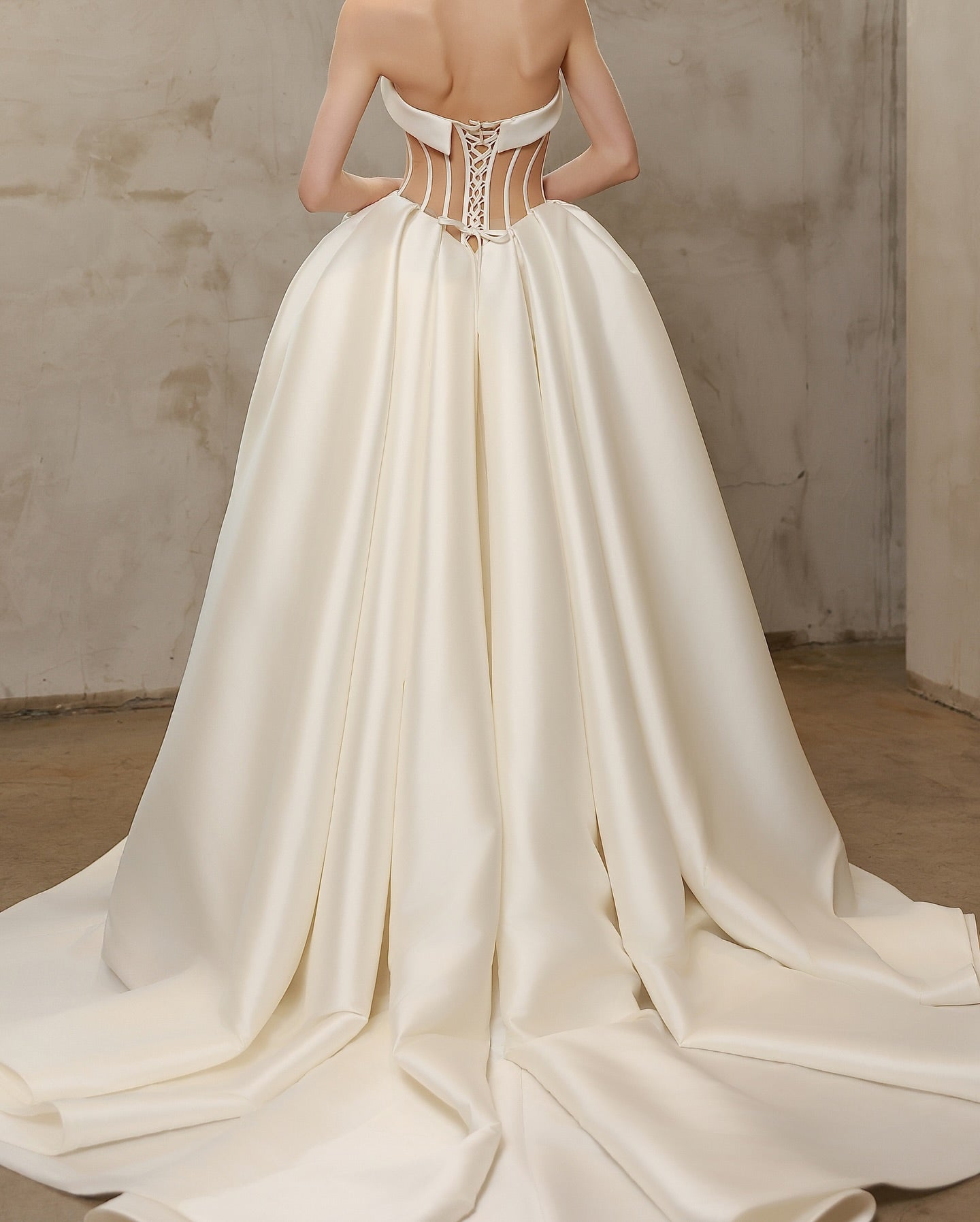 🎀 Corset back with lace-up detailing and sheer side panels