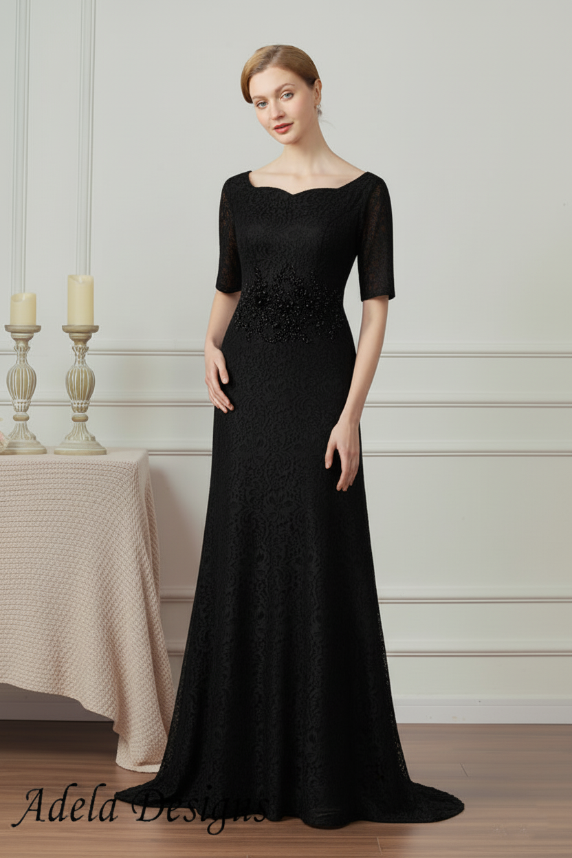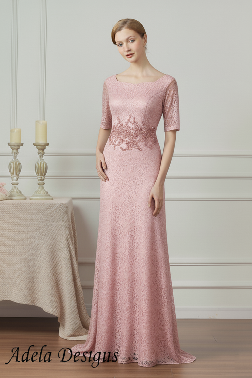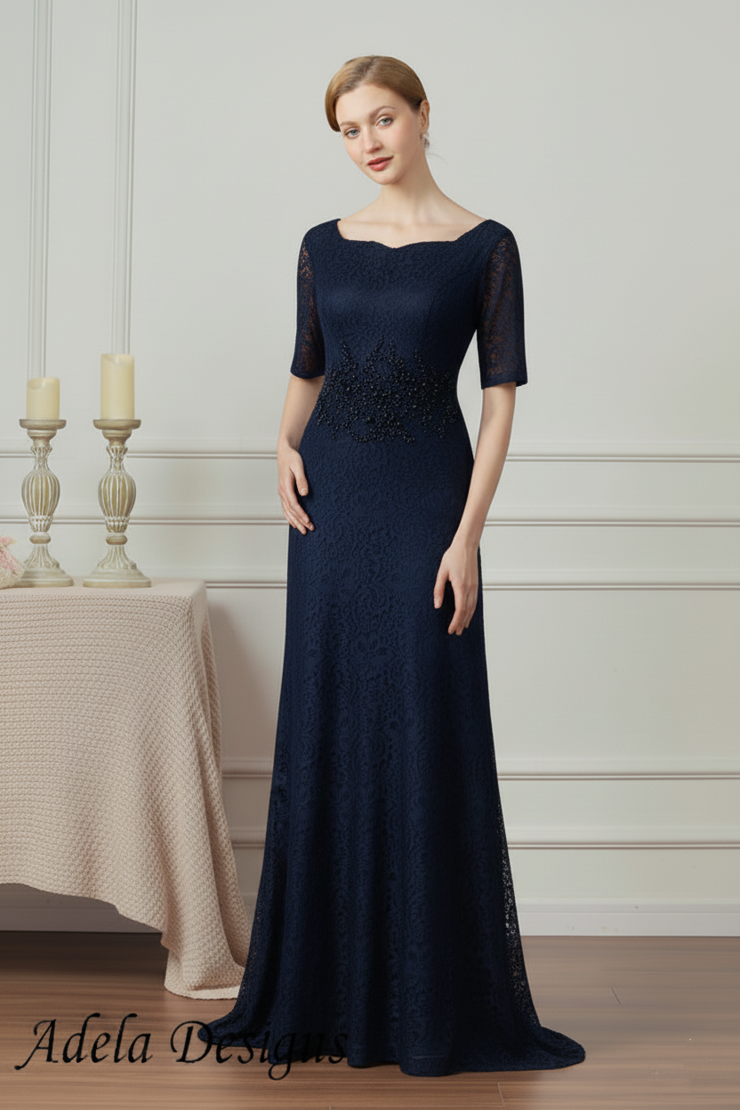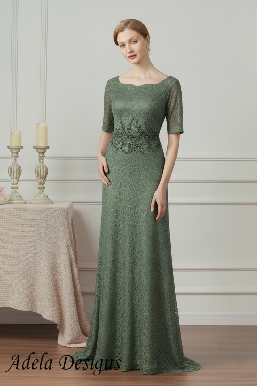 Two pieces Lace Mermaid Long mother-of-the-bride dress With Half Sleeves. Lace Bolero included.