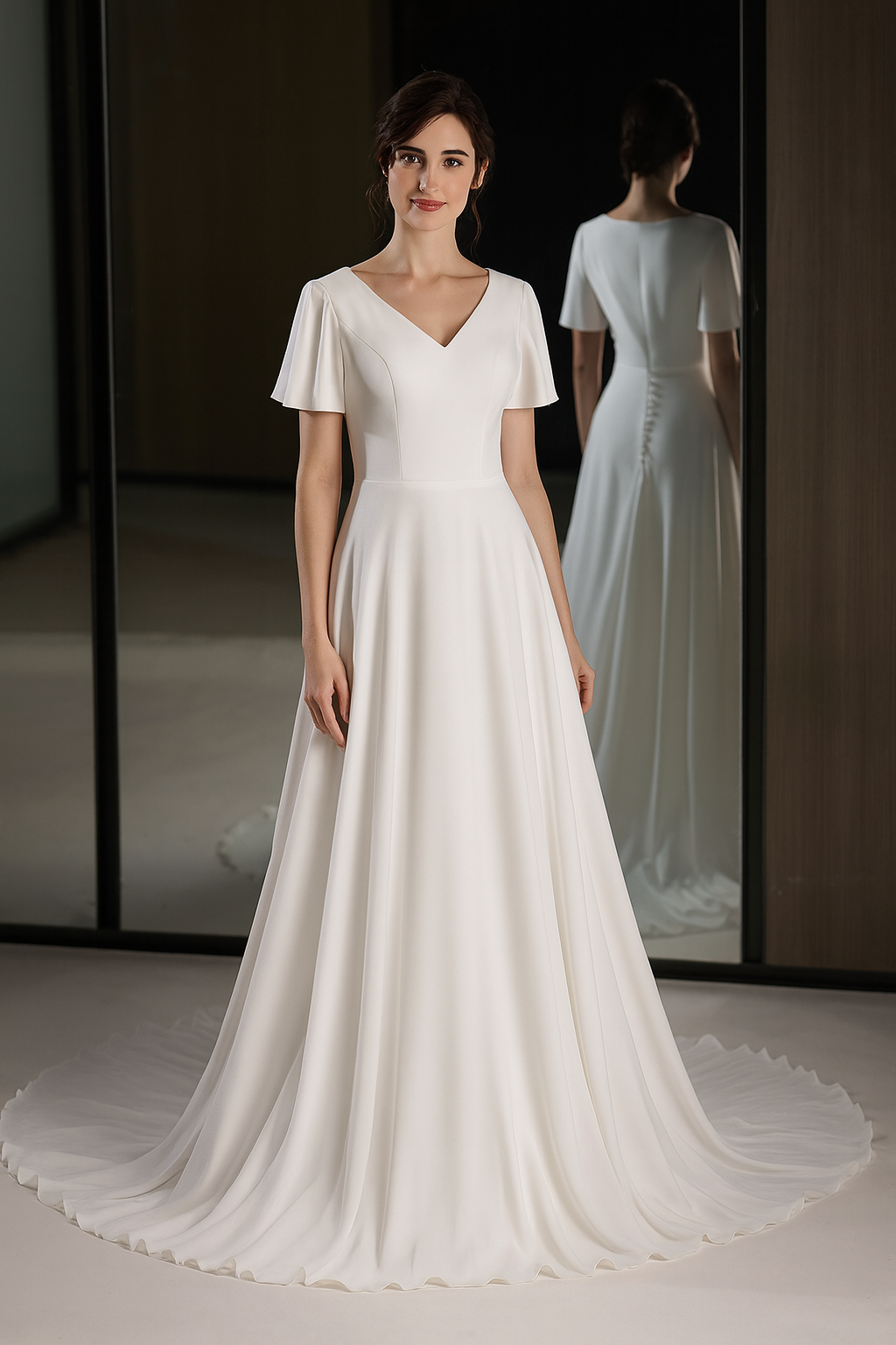 Simple Chiffon A-line Modest Bridal Gowns Wedding Dress With Flutter Sleeves