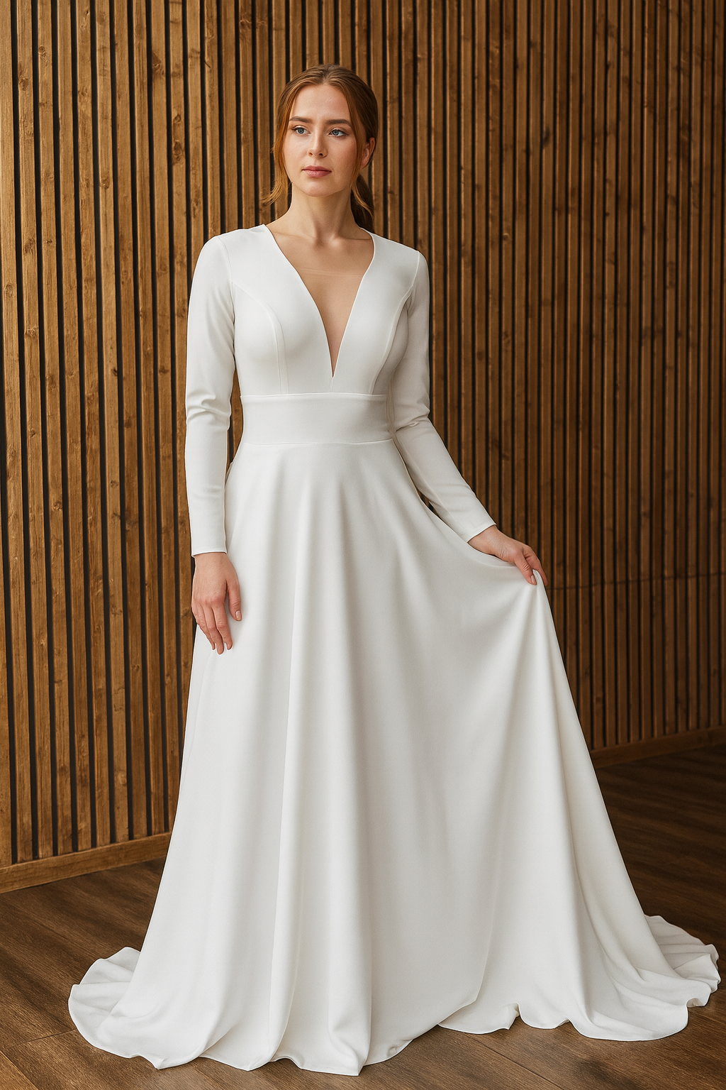 Maiah - Modest Crepe Long Sleeve Bridal Gown