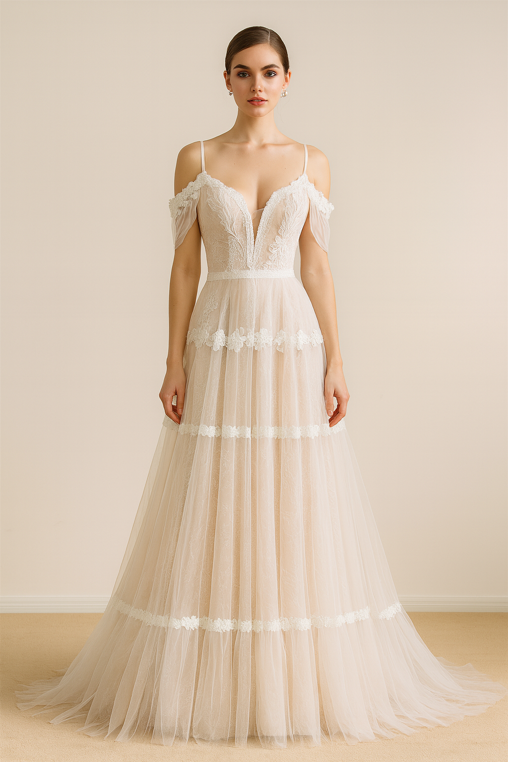 - Blush Undertones (optional): Adds a soft, romantic hue beneath the lace overlay.