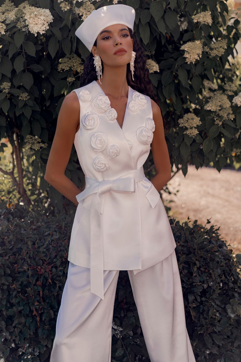 Rebel by Tatiana Kaplun is a striking bridal pant suit designed for the bride who leads with confidence and refuses tradition for tradition’s sake. Part of the Aristocratka Collection, Rebel blends sharp tailoring with couture femininity, offering a powerful alternative to the classic wedding gown.