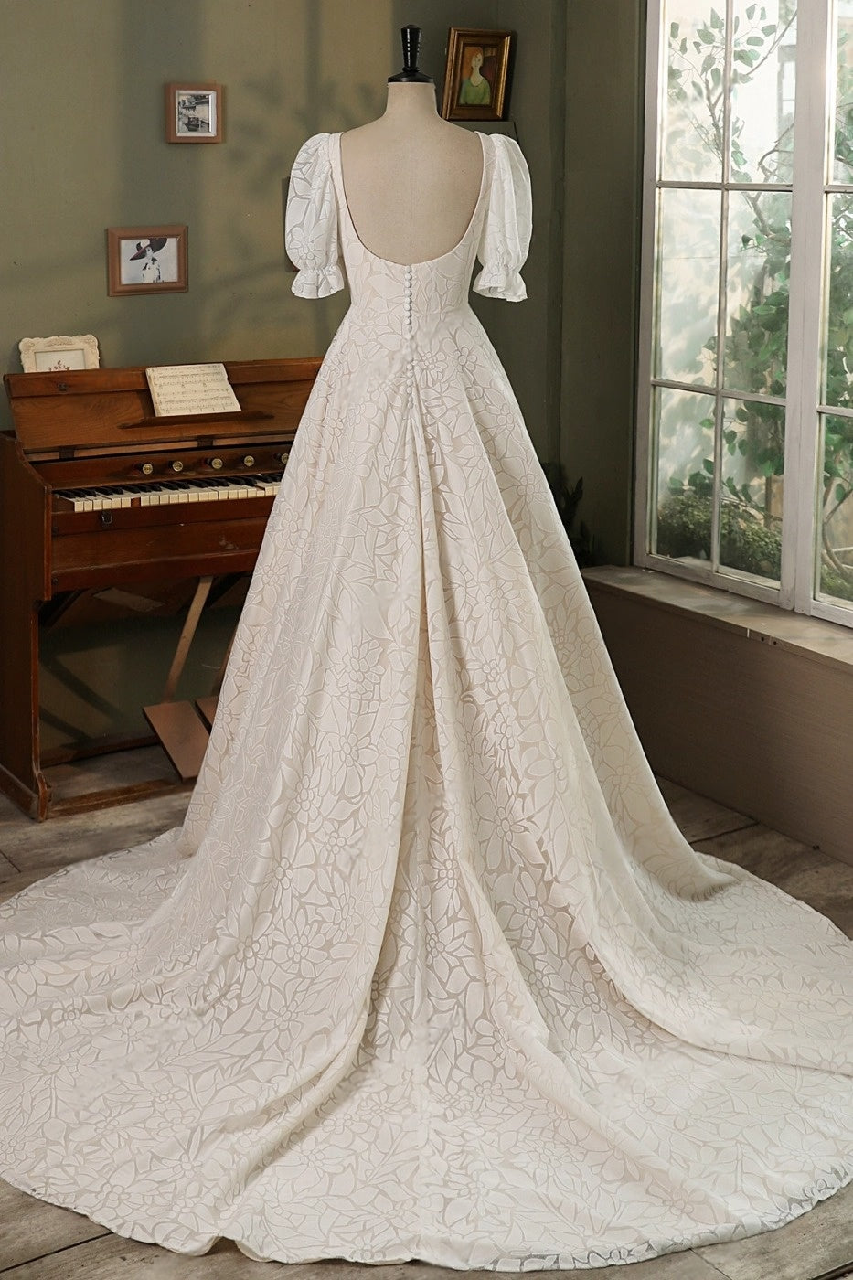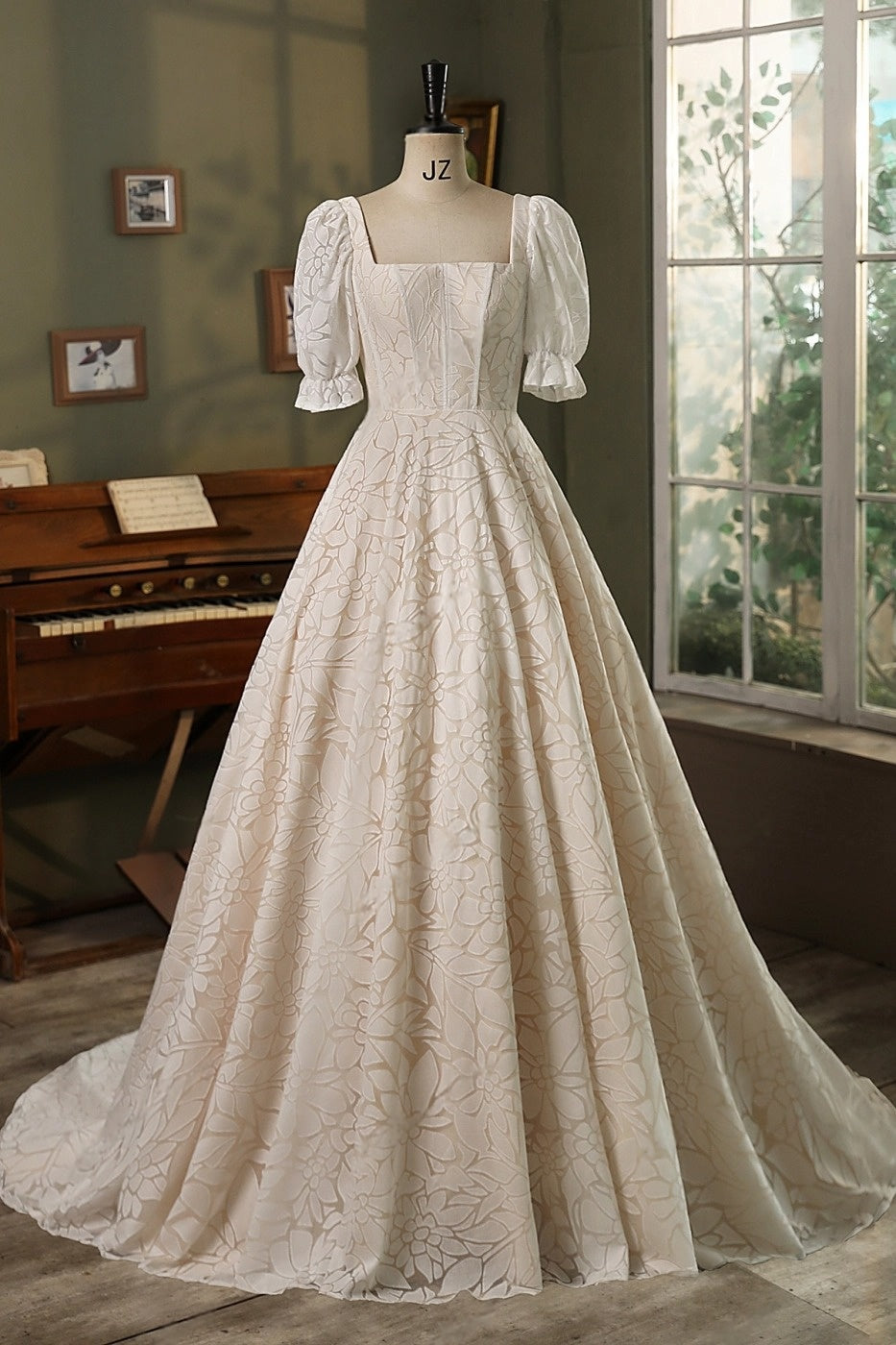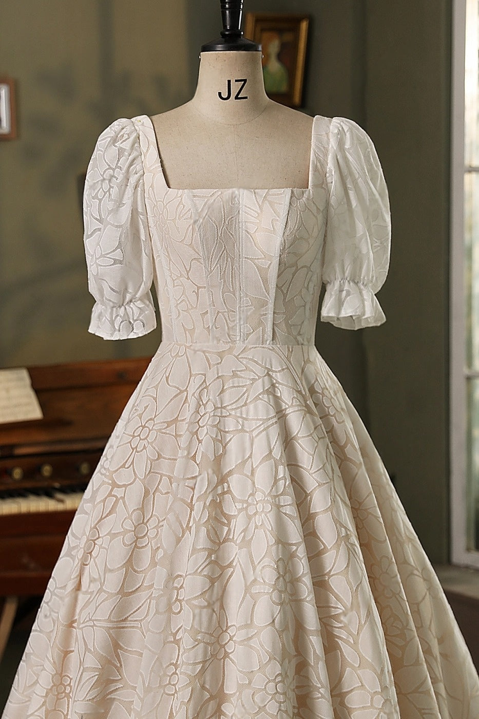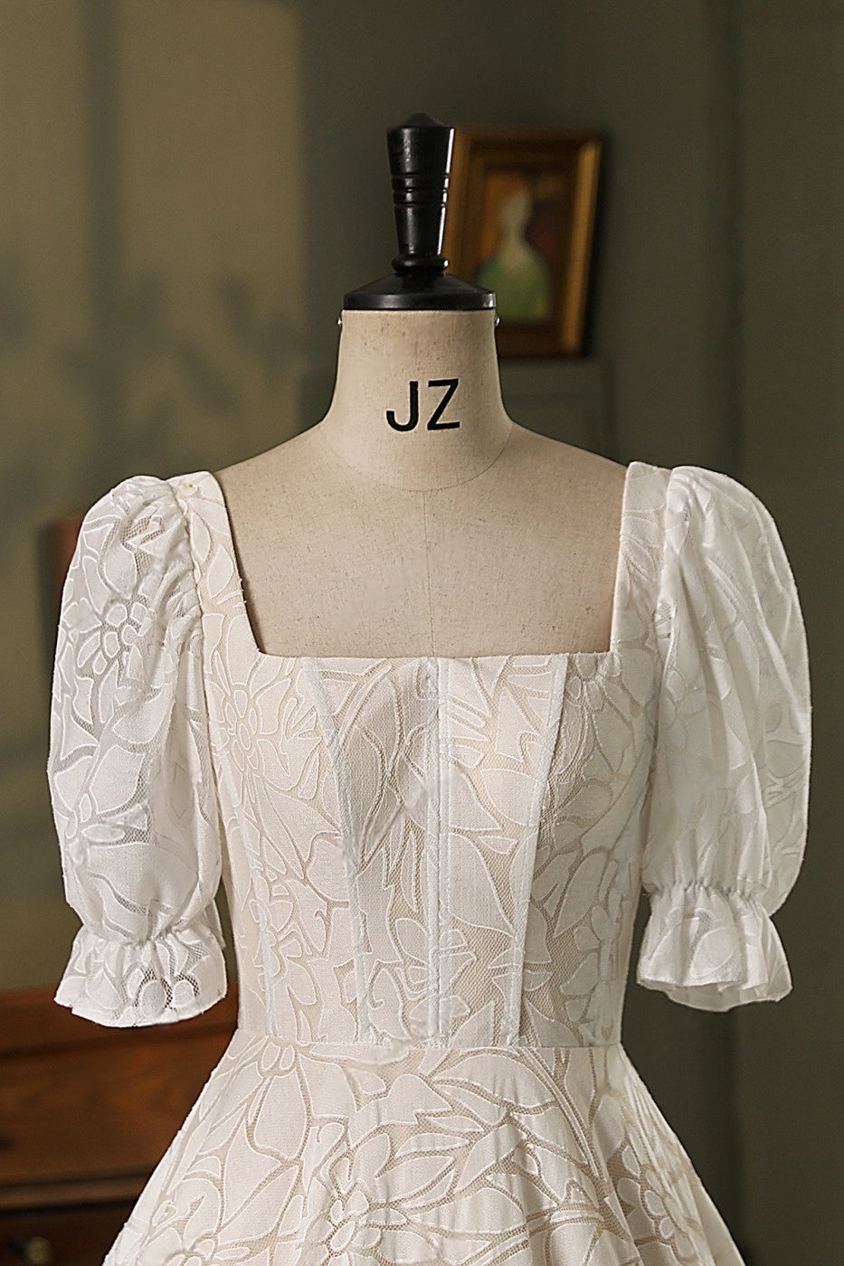 Rosalind – Vintage-Inspired Puff Sleeve Floral Lace Wedding Dress