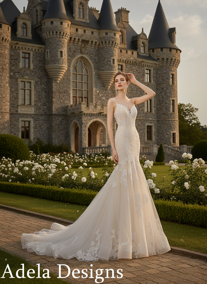 Effortlessly romantic and exquisitely tailored, the Tillie gown by Adela Designs embodies timeless bridal beauty with a modern, feminine twist. This fitted mermaid silhouette features a delicately sculpted sweetheart neckline and spaghetti straps, blending elegance and allure in perfect harmony.